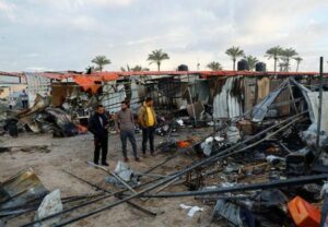 Palestinos inspeccionan los daños tras un ataque israelí contra un campamento de desplazados, en Jan Yunis, en el sur de la Franja de Gaza. 5 de diciembre de 2024. REUTERS/Mohammed Salem