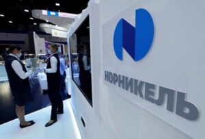 FILE PHOTO: The logo of Russia’s mining company Norilsk Nickel (Nornickel) is seen during the St. Petersburg International Economic Forum (SPIEF) in Saint Petersburg, Russia June 15, 2022. REUTERS/Maxim Shemetov/File Photo