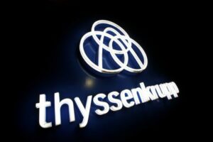 FILE PHOTO: Thyssenkrupp’s logo is seen outside the elevator test tower in Rottweil, Germany, January 21, 2020. REUTERS/Michaela Rehle/File Photo
