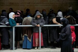 People queue to buy bread, after rebels took the main northern city of Aleppo and have since pushed south from their enclave in northwest of the country, in Aleppo, Syria, December 4, 2024. REUTERS/Karam al-Masri