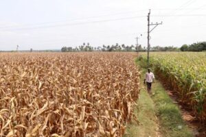 FILE PHOTO: A farmer walks in a corn field in Krishna district in the southern state of Andhra Pradesh, India, April 1, 2024. REUTERS/Almaas Masood/File Photo