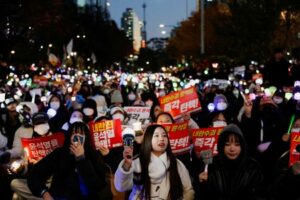 FILE PHOTO: Protesters take part in a rally calling for the impeachment of South Korean President Yoon Suk Yeol, who declared martial law, which was reversed hours later, near the National Assembly in Seoul, South Korea, December 8, 2024. REUTERS/Kim Soo-hyeon/File Photo
