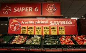 FILE PHOTO: A view of fruits and vegetables on offer in Aldi, in London, Britain, September 9, 2024. REUTERS/Mina Kim/File Photo