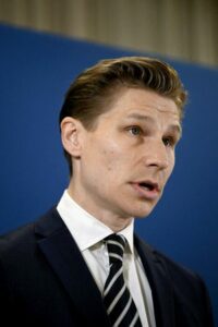 FILE PHOTO: Finnish Defence Minister Antti Hakkanen speaks during a press conference, in Helsinki, Finland, September 27, 2024. Lehtikuva/Emmi Korhonen via REUTERS