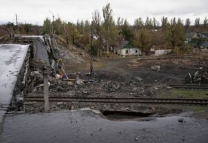 FOTO DE ARCHIVO: FOTO DE ARCHIVO: Una vista muestra un puente destruido, en medio del ataque de Rusia a Ucrania, en la ciudad de Pokrovsk en la región de Donetsk, Ucrania 4 de noviembre 2024. REUTERS/Inna Varenytsia/Foto de archivo 4 de noviembre 2024. REUTERS/Inna Varenytsia/Foto de archivo