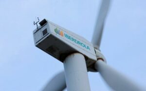 FOTO DE ARCHIVO. El logo de la empresa energética española Iberdrola en unos aerogeneradores en el monte Oiz, cerca de Durango, País Vasco, España. 20 de febrero de 2023. REUTERS/Vincent West