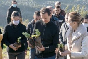 FOTO DE ARCHIVO: El presidente de Siria, Bashar al Assad, y su esposa Asma, plantan árboles en la ciudad de Draykish, cerca de Tartous, Siria 30 de diciembre de 2020. SANA/Handout via REUTERS/File Photo