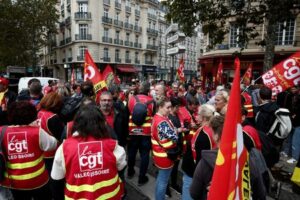 FILE PHOTO: Employees of Valeo demonstrate during a strike called by unions against planned job cuts in Paris, France, September 17, 2024. REUTERS/Benoit Tessier/File Photo