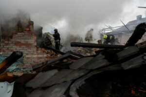 Firefighters work at the site of residential buildings hit by a Russian drone strike, amid Russia’s attack on Ukraine, in Kharkiv, Ukraine December 25, 2024. REUTERS/Sofiia Gatilova