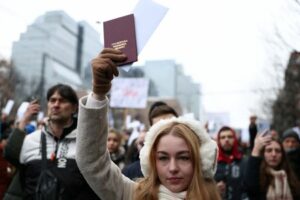 Students gather to deliver 1000 identical letters of complaint to chief state prosecutor Zagorka Dolovac to protest the slow investigation of a train station roof collapse last month in Novi Sad in which 15 people died, in Belgrade, Serbia, December 25, 2024. REUTERS/Zorana Jevtic