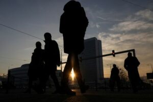 FILE PHOTO: People walk along a street during rush hour in Sarajevo, Bosnia and Herzegovina, December 19, 2024. REUTERS/Amel Emric/File Photo