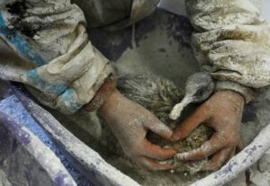 FILE PHOTO: A volunteer uses flour to clean a bird following an oil spill which was caused by an incident involving two tankers damaged in a storm in the Kerch Strait, in the village of Vityazevo near the Black Sea resort of Anapa, Russia December 20, 2024. REUTERS/Sergey Pivovarov/File Photo