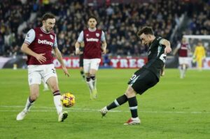 Soccer Football – Premier League – West Ham United v Liverpool – London Stadium, London, Britain – December 29, 2024 Liverpool’s Diogo Jota scores their fifth goal Action Images via Reuters/Peter Cziborra ..