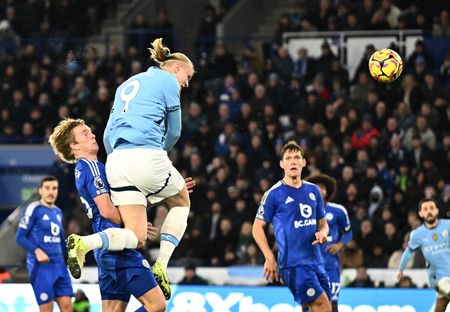 LEICESTER, England (Reuters) -Manchester City won for the first time in five Premier League games on Sunday thanks to goals from Erling Haaland and Savinho for a 2-0 victory at Leicester City in manager Pep Guardiola’s 500th game in charge.