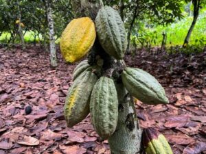 FILE PHOTO: FILE PHOTO: Farmers work at a cocoa farm December 30, 2024 December 30, 2024 FILE PHOTO: Cocoa pods are seen at a cocoa farm in Daloa, Ivory Coast October 2, 2023. REUTERS/Ange Aboa/File Photo
