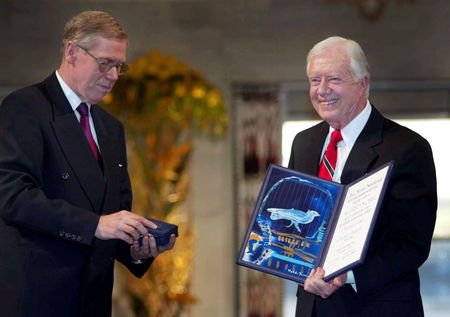 OSLO (Reuters) -Former U.S. President Jimmy Carter should be praised for his “decades of untiring effort” to find peaceful solutions to international conflicts and to advance democracy and human rights, the body awarding the Nobel Peace Prize said on Monday.