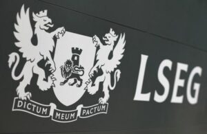 Signage for the London Stock Exchange Group is seen outside of offices in Canary Wharf in London, Britain, August 3, 2023. REUTERS/Toby Melville/File Photo