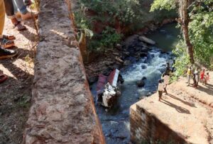 Mourners stand next to a wrecked Isuzu truck after it fell off a bridge in Bona village of Sidama Regional State in Ethiopia, December 30, 2024. REUTERS/Stringer