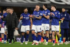 Soccer Football – Premier League – Ipswich Town v Chelsea – Portman Road, Ipswich, Britain – December 30, 2024 Ipswich Town’s Kalvin Phillips with teammates celebrate after the match REUTERS/Chris Radburn/ File Photo