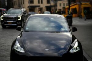 FOTO DE ARCHIVO: Un automóvil Tesla está estacionado en el Meatpacking District de la ciudad de Nueva York, EEUU, el 2 de enero de 2025. REUTERS/Adam Gray/Foto de archivo