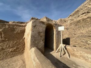The back side entrance of the tomb of Jehuti-Mes, that was discovered by archaeologists from the Ministry of Tourism and Antiquities along with the staff of Zahi Hawass’ archaeological and heritage mission, is seen near the Queen Hatshepsut Valley Temple’s in Deir El-Bahari on the Nile’s west bank in Luxor, Egypt, January 8, 2025. REUTERS/Sayed Sheashaa