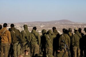 FILE PHOTO: Israeli soldiers look into Syria, after the ousting of Syria’s Bashar al-Assad, in Ein Zivan in the Israeli-occupied Golan Heights, December 25, 2024. REUTERS/Jamal Awad/File Photo