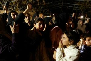 Children react during the funeral of Palestinians killed an Israeli drone strike, in Tammoun near Tubas, Israeli-occupied West Bank, January 8, 2025. REUTERS/Raneen Sawafta
