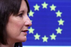 La ministra de Finanzas británica, Rachel Reeves, asiste a una conferencia de prensa con el presidente del Eurogrupo, Paschal Donohoe, después de la reunión de ministros de finanzas de la eurozona, en Bruselas, Bélgica, el 9 de diciembre de 2024. REUTERS/Yves Herman