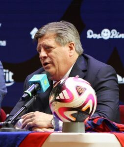 Miguel Herrera habla durante su presentación como director técnico de la selección de Costa Rica. Teatro Melico Salazar, San José, Costa Rica. 10 de enero de 2025.