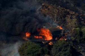 An house burns as the Palisades Fire rages on at the Mandeville Canyon, in Los Angeles, California, U.S., January 11, 2025. REUTERS/Shannon Stapleton