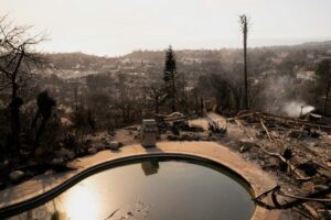 A view shows the backyard of a home destroyed by the Palisades Fire in the Pacific Palisades neighborhood in Los Angeles, California, U.S. January 11, 2025. REUTERS/David Ryder