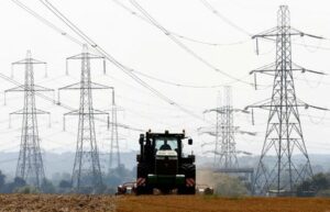 FILE PHOTO: A farmer works in a field surrounded by electricity pylons in Ratcliffe-on-Soar, in central England, September 10, 2014. REUTERS/Darren Staples/File Photo
