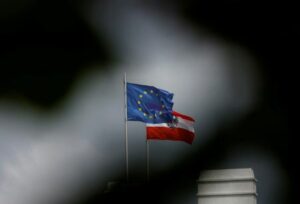 ARCHIV: Eine österreichische und eine EU-Flagge flattern auf dem Dach der Hofburg in Wien, Österreich, 22. Mai 2024. REUTERS/Leonhard Foeger