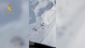 Foto de una tomá aérea de TV del sábado que muestra el colapso de una telesilla en Astun, en la región de Aragón