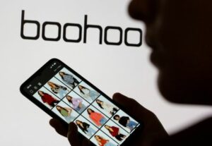 FILE PHOTO: A woman poses with a smartphone showing the Boohoo app in front of the Boohoo logo on display in this illustration taken September 30, 2020. REUTERS/Dado Ruvic/Illustration/File Photo