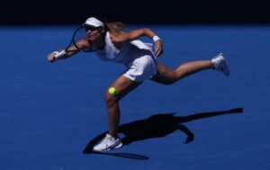 Tenis – Abierto de Australia – Melbourne Park, Melbourne, Australia – 21 de enero de 2025 La española Paula Badosa en acción durante su partido de cuartos de final contra la estadounidense Coco Gauff REUTERS/Tingshu Wang