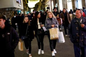 FILE PHOTO: Shoppers walk along a shopping street ahead of Christmas in Rome, Italy, December 23, 2022. REUTERS/Guglielmo Mangiapane/File Photo