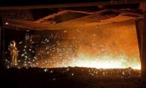 FILE PHOTO: A steel worker stands at a furnace at the plant of German steel company Salzgitter AG in Salzgitter, Lower Saxony March 17, 2015. Salzgitter AG presented their results at the annual news conference on March 27. Picture taken March 17. REUTERS/Fabian Bimmer/File Photo