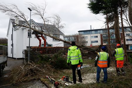DUBLIN (Reuters) – Record high winds from Storm Eowyn battered Ireland and Northern Ireland on Friday, leaving one man dead and almost one-third of Irish homes and businesses without power and forcing the cancellation of hundreds of flights.