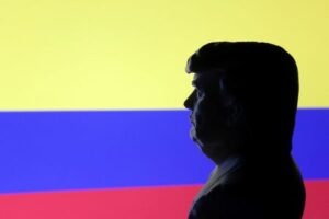 FOTO DE ARCHIVO. Un modelo en miniatura impreso en 3D del presidente de Estados Unidos, Donald Trump, y la bandera de Colombia se ven en esta ilustración tomada el 27 de enero, 2025. REUTERS/Dado Ruvic/Ilustración