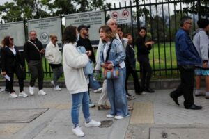 Personas que tenían una cita programada para el trámite de visa a Estados Unidos y les fue cancelada, esperan afuera de la embajada de Estados Unidos por alguna información de reprogramación, en Bogotá, Colombia, 27 de enero, 2025. REUTERS/Luisa González