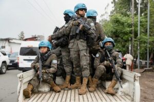 ARCHIV: Mitglieder der MONUSCO sichern die Evakuierung von nicht benötigtem UN-Personal nach den Kämpfen zwischen M23-Rebellen und FARDC in Goma, North Kivu province, Demokratische Republik Kongo 25. January 2025. REUTERS/Arlette Bashizi TPX IMAGES OF THE DAY
