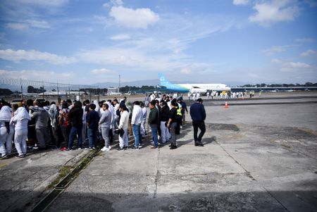 27 ene (Reuters) -Un avión militar estadounidense con 64 migrantes deportados aterrizó en Guatemala la tarde del lunes, dijeron funcionarios de ambos países, como parte de las medidas severas del presidente Donald Trump contra la migración ilegal.