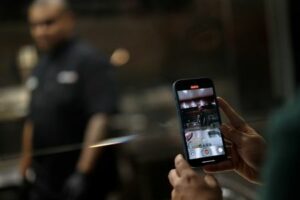 Spain’s viral chef Elias Dosunmu with over 20 million followers across all of his social media is recorded with a mobile phone for social media in his restaurant in Madrid, Spain, January 20, 2025. REUTERS/Juan Medina