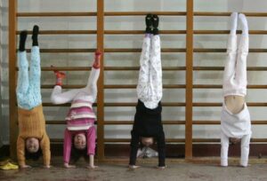 FILE PHOTO: Members of the Nanjing children diving team practise standing on their hands during a training session at a sports college in Nanjing, Jiangsu province, January 13, 2008. REUTERS/Sean Yong/File Photo