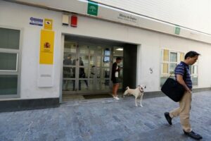 FOTO DE ARCHIVO. Varias personas en el exterior de una oficina de empleo gestionada por el Gobierno en la capital andaluza, Sevilla. 2 de junio de 2016. REUTERS/Marcelo del Pozo
