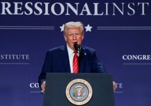 El presidente Donald Trump habla durante una reunión de la conferencia de miembros republicanos de la Cámara de Representantes, en el resort Trump National Doral, en Miami, Florida, EEUU. 27 de enero de 2025. REUTERS/Elizabeth Frantz