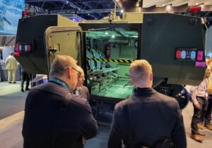 People look at the Finnish defence group Patria’s 6×6 Common Armoured Vehicle displayed at the SecD-Day 2025 security conference in Helsinki, Finland January 29, 2025. REUTERS/Anne Kauranen