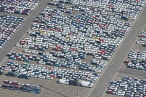 ARCHIV: Autos, die für den Export bestimmt sind, warten im Hafen von Bremerhaven, Deutschland, auf das Verladen, 24. April 2020. REUTERS/Fabian Bimmer