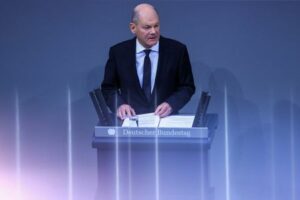 German Chancellor Olaf Scholz addresses the German lower house of parliament Bundestag after the attacks in Magdeburg and Aschaffenburg in Berlin, Germany, January 29, 2025. REUTERS/Nadja Wohlleben